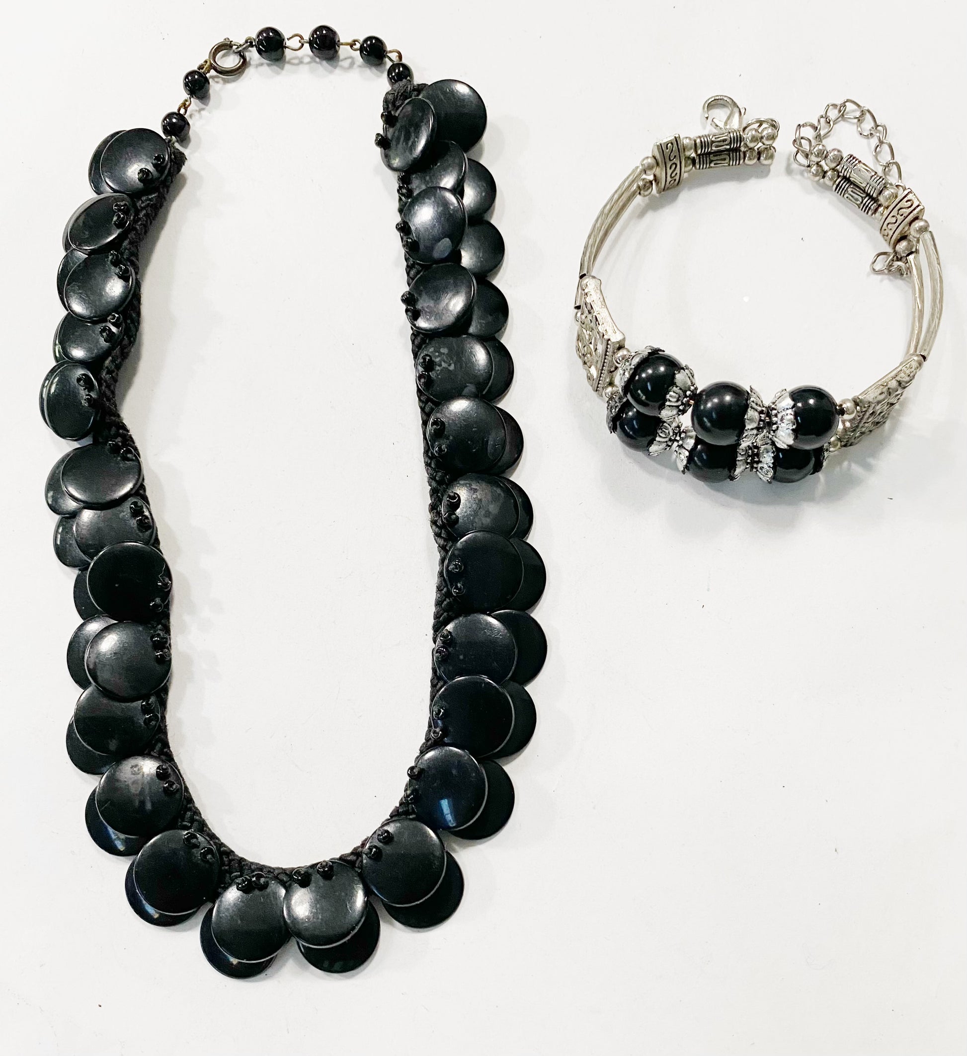 This elegant black choker necklace and matching bracelet will most definitely give you an edgy look.
